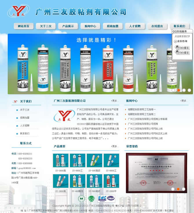 廣州三友膠粘劑有限公司是專業(yè)生產(chǎn)經(jīng)營(yíng)膠粘劑產(chǎn)品的公司。公司集品牌開發(fā)、生產(chǎn)、銷售、服務(wù)為一體。公司已通過(guò)ISO9001國(guó)際質(zhì)量標(biāo)準(zhǔn)認(rèn)證及被授予中國(guó)信用企業(yè)認(rèn)證體系示范單位。公司生產(chǎn)基地座落于佛山市順德上涌工業(yè)區(qū),具備從制瓶、印刷、制膠、自動(dòng)分裝一條龍的生產(chǎn)能力。公司產(chǎn)品廣泛應(yīng)用于建筑工程項(xiàng)目、電子電器工廠、門窗玻璃加工廠等民用、商用領(lǐng)域。高品質(zhì)、高性價(jià)比、完善的服務(wù),使公司品牌形象與知名度在業(yè)界得到高度的認(rèn)可。
