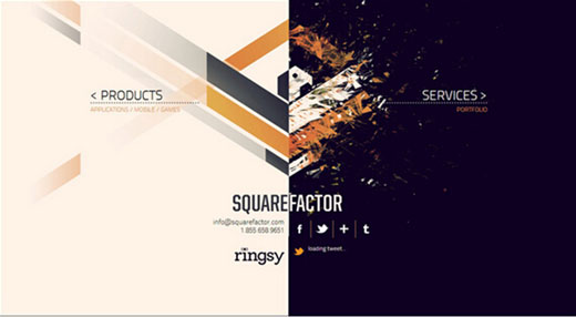 再看下一個(gè)頁面設(shè)計(jì),采用了兩種顏色拼湊的背景圖片,給人以強(qiáng)大的視覺沖擊,其大部分是空白處,用戶很快就能找到重點(diǎn),頁面簡單大方。