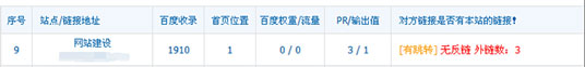 2、權(quán)衡網(wǎng)站的權(quán)重。尋找友鏈最好是自己主動去發(fā)現(xiàn),方法可以通過自己網(wǎng)站的關(guān)鍵詞來搜索,一般能夠排在前面的網(wǎng)站權(quán)重是相對較高的,如果發(fā)現(xiàn)目標網(wǎng)站權(quán)重比自己網(wǎng)站要高得多,還可考察目標網(wǎng)站上的友鏈站點來選擇,總之,選擇友鏈的最低標準都要是與自身權(quán)重相當?shù)木W(wǎng)站?疾煲粋網(wǎng)站除了看它的權(quán)重以外,網(wǎng)站的收錄,索引,排名趨勢,鏈接數(shù)量等都是參考因素。例如:一個網(wǎng)站的大致情況如下,所要找的網(wǎng)站友鏈數(shù)則最好不超過30個,權(quán)重相當?shù)那疤嵯戮鸵词珍浟渴欠褚彩?000左右,其次是看它主關(guān)鍵詞的排名是否靠前,網(wǎng)站內(nèi)容更新頻率以及大體趨勢是否朝好的方向變化。對于新站來說也可將其作為一個判斷依據(jù),千萬不可好高騖遠,要想找到權(quán)重更高的網(wǎng)站來做友鏈,唯一一個方法就是努力提高自身網(wǎng)站權(quán)重。