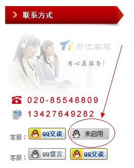 最近又發(fā)現(xiàn)有網(wǎng)頁QQ圖標顯示“未啟用”情況,嘗試點擊交談,仍然可以直接接通對方QQ進行交談,但是對于網(wǎng)站訪客來說,QQ在線客服圖標如顯示未啟用,將是一個無效的存在方式,即訪客大多數(shù)情況下不會選擇點擊顯示“未啟用”狀態(tài)的QQ客服,這對于網(wǎng)站管理員來說是個令人困擾的問題,廣州奇億網(wǎng)絡其實早在2010年已經(jīng)提出了解決方法,但由于三年來騰訊QQ也在不斷的變化改進之中,三年前的解決方法已經(jīng)不適合于現(xiàn)在使用,因而小編再更新此文,希望能夠幫助我們的客戶以及遇到類似問題的站長解決這個問題。