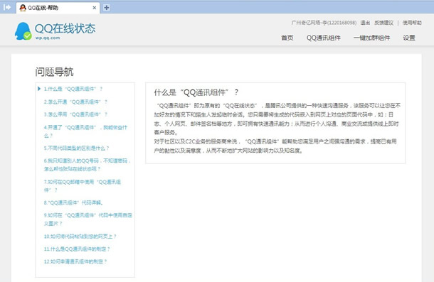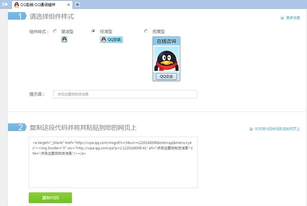 3、點擊網(wǎng)站右上方的“QQ通訊組件”按鈕,可以根據(jù)自己的喜好選擇相應的QQ在線客戶顯示形式。此步驟需要將代碼復制黏貼到你的網(wǎng)站代碼中方可啟用。途徑:原網(wǎng)站QQ在線客服代碼==》重新設置后的QQ在線客戶代碼==》保存生成即可。不熟悉網(wǎng)站代碼的可以請網(wǎng)站建設公司幫忙設置。