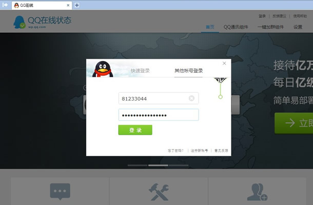 1、打開網(wǎng)站http://wp.qq.com,并登陸客服QQ(登陸入口設置在網(wǎng)站首頁的右上方),如下圖: